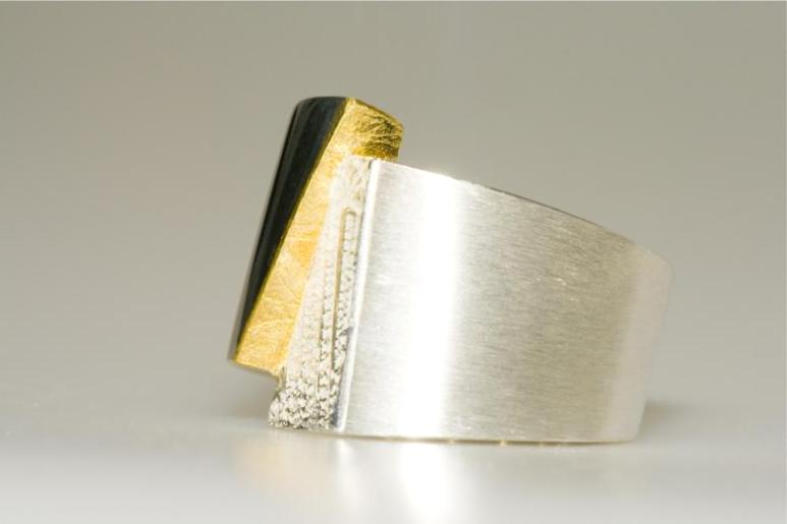 Halssieraad verenstaal met 18krt goud en zilver - detail